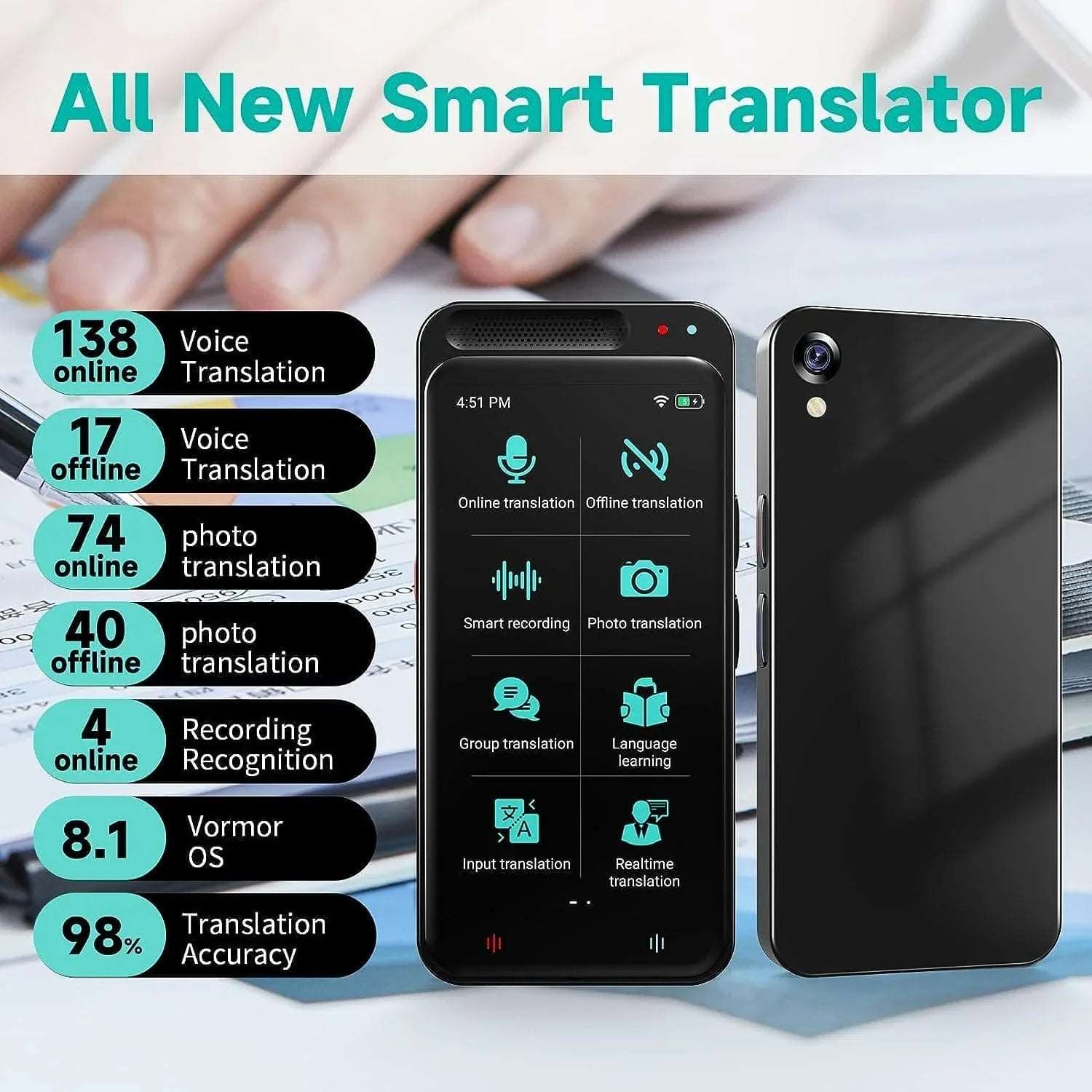 Explorez un monde de communication fluide avec le Vormor, votre appareil incontournable pour la traduction instantanée dans plus de 200 pays/régions.